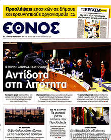 Τα σημερινά πρωτοσέλιδα των εφημερίδων