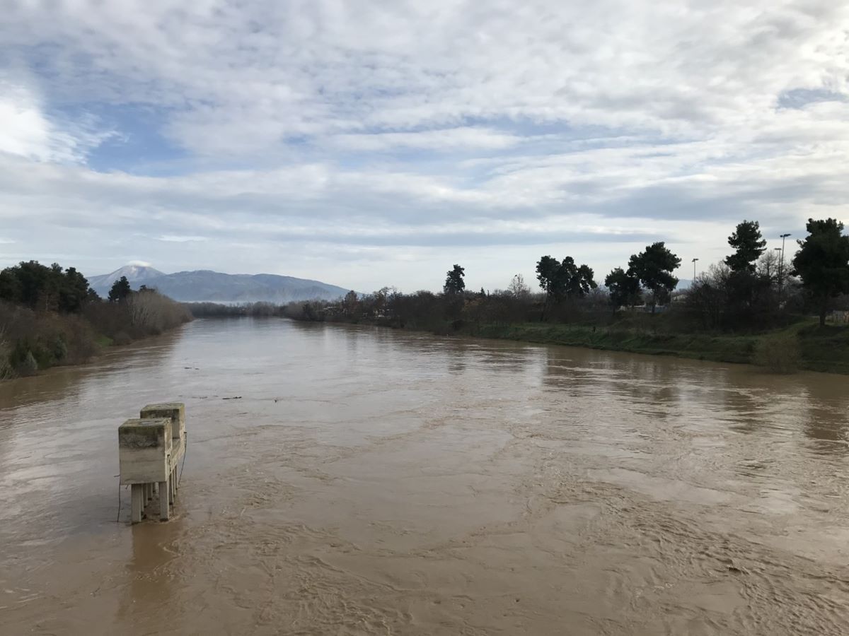 Ο ποταμός που διασχίζει τη Λάρισα, «φούσκωσε» σε αρκετά σημεία του.