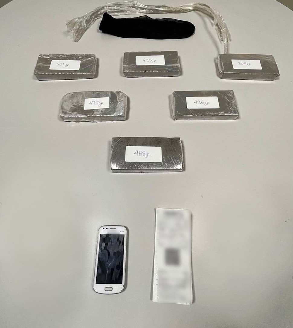 • (6) δέματα ηρωίνης συνολικού βάρους 2 κιλών και 963 γραμμαρίων.