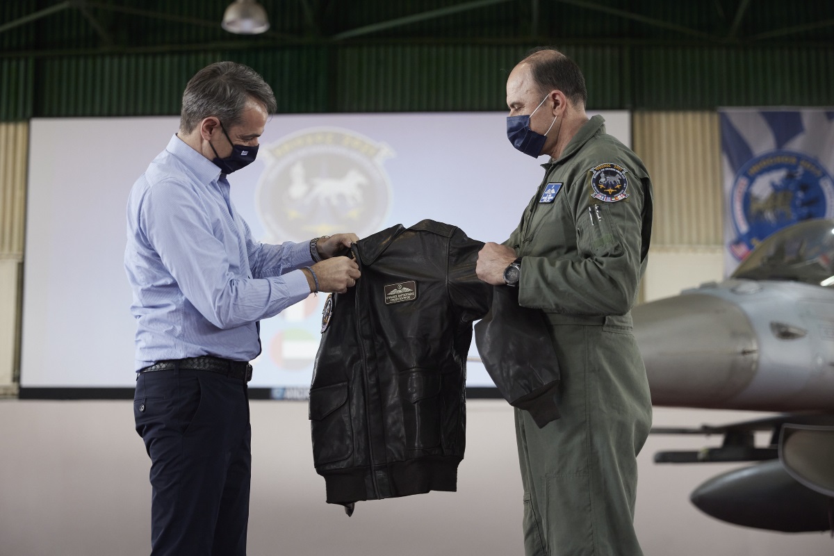 Στο περιθώριο της άσκησης ο Ελασσονίτης Αρχηγός του Γενικού Επιτελείου Αεροπορίας, Aντιπτέραρχος Γεώργιος Μπλιούμης, επεφύλασσε και μία έκπληξη για τον Πρωθυπουργό: Του χάρισε ένα δερμάτινο μπουφάν, όμοιο με αυτά που φορούν οι πιλότοι της Πολεμικής Αεροπορίας, το οποίο φέρει το διακριτικό «Κυριάκος Μητσοτάκης – Πρωθυπουργός».
